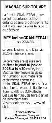 de Madame Janine GRANJETEAU née DOUMAIN