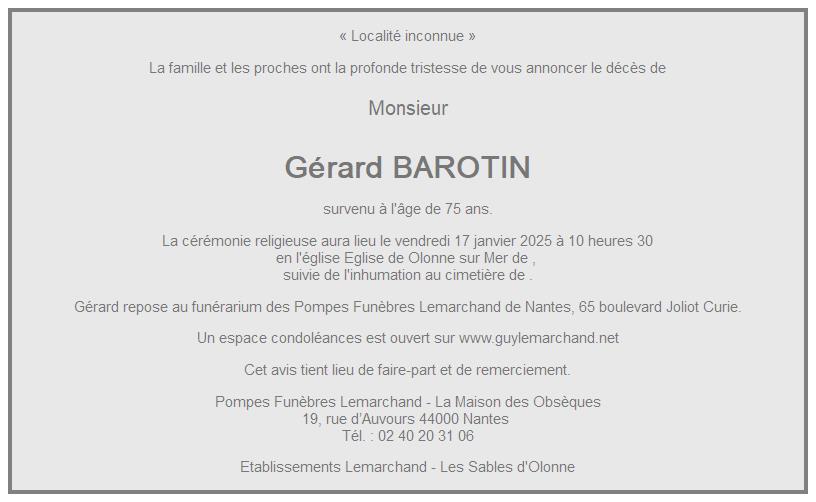 de Monsieur Gérard BAROTIN