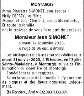Cet espace « condoléances » est dédié à la mémoire de Monsieur Jean SIMONET.