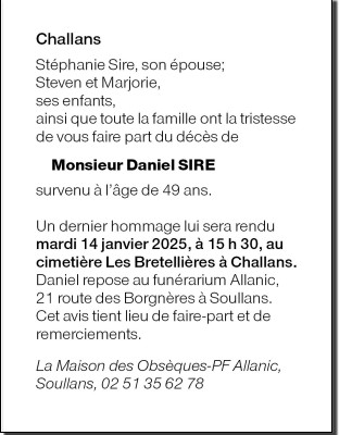 Cet espace « condoléances » est dédié à la mémoire de Monsieur Daniel SIRE.