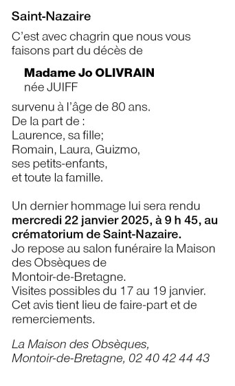 de Madame Josiane OLIVRAIN née JUIFF