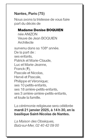 de Madame Denise BOQUIEN née ANIZON