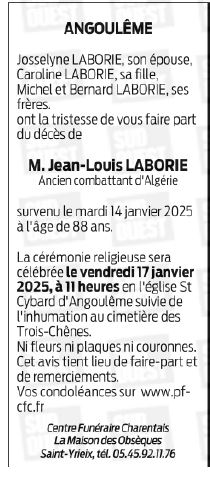 Cet espace « condoléances » est dédié à la mémoire de Monsieur Jean-Louis LABORIE.