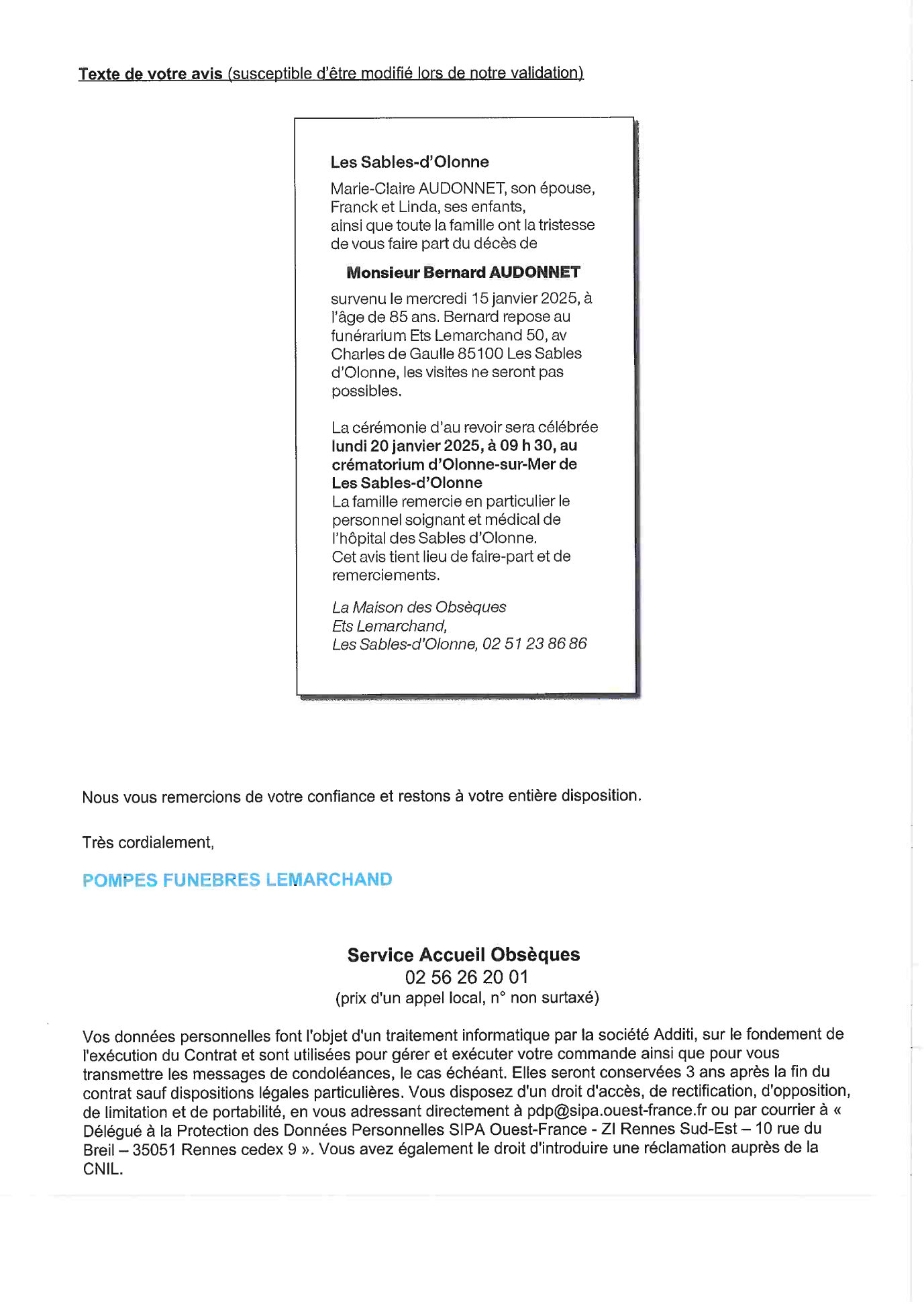 Cet espace « condoléances » est dédié à la mémoire de Monsieur Bernard AUDONNET.