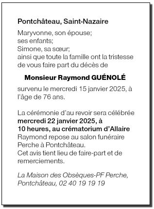 de Monsieur RAYMOND GUENOLE