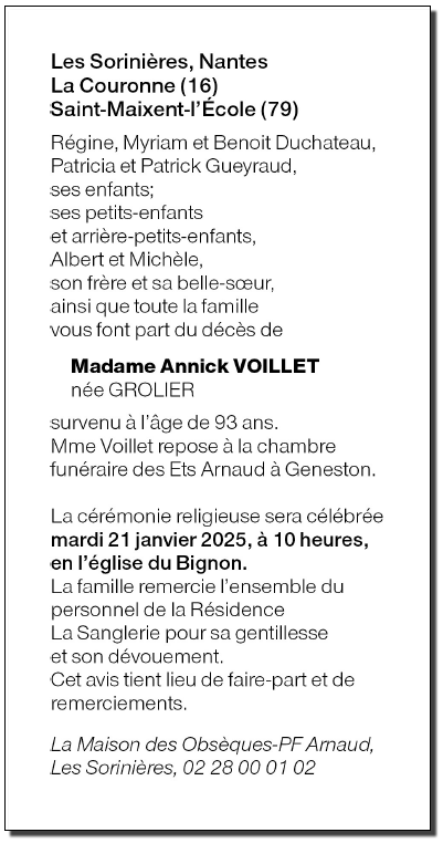 de Madame Annick VOILLET née GROLIER