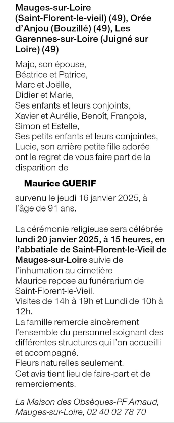 Cet espace « condoléances » est dédié à la mémoire de Monsieur Maurice GUÉRIF.