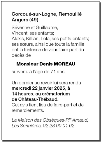 Cet espace « condoléances » est dédié à la mémoire de Monsieur Denis MOREAU.