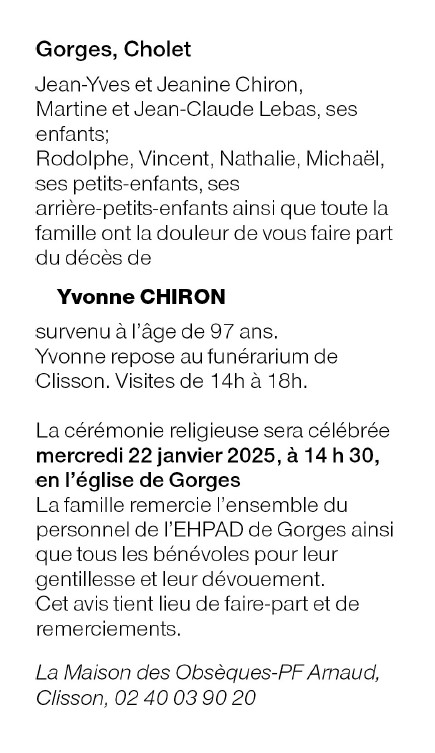 de Madame Yvonne CHIRON née MARTINEAU