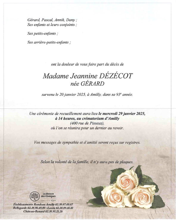 de Madame Jeannine DÉZÉCOT née GÉRARD