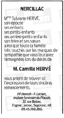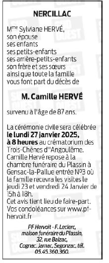 Cet espace « condoléances » est dédié à la mémoire de Monsieur Camille HERVÉ.