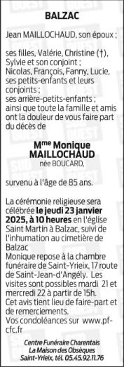 de Madame MONIQUE MAILLOCHAUD née BOUCARD