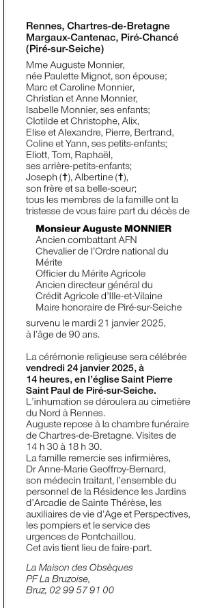 Cet espace « condoléances » est dédié à la mémoire de Monsieur Auguste MONNIER.