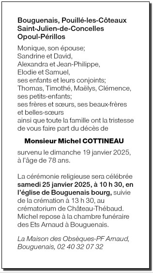 Cet espace « condoléances » est dédié à la mémoire de Monsieur Michel COTTINEAU.