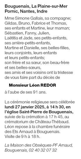Cet espace « condoléances » est dédié à la mémoire de Monsieur Léon REDOR.