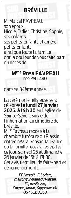 de Madame Rosa FAVREAU née PALLARO