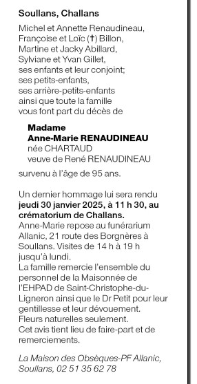 de Madame Anne-Marie RENAUDINEAU née CHARTAUD