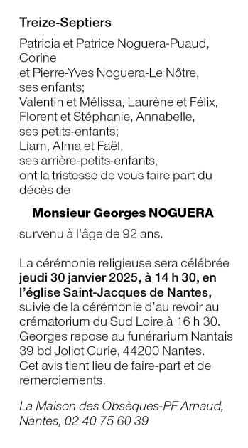 Cet espace « condoléances » est dédié à la mémoire de Monsieur Georges NOGUERA.