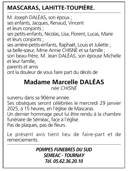 de Madame Marcelle DALÉAS née CHISNÉ