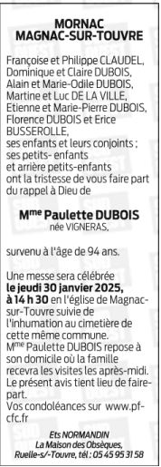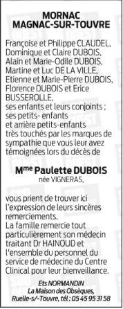 de Madame PAULETTE DUBOIS née VIGNERAS