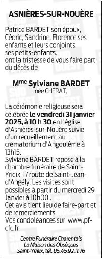 de Madame SYLVIANE BARDET née CHERAT