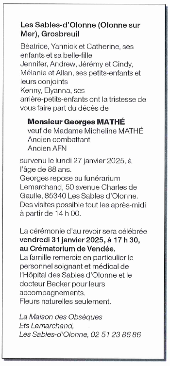 Cet espace « condoléances » est dédié à la mémoire de Monsieur Georges MATHÉ.