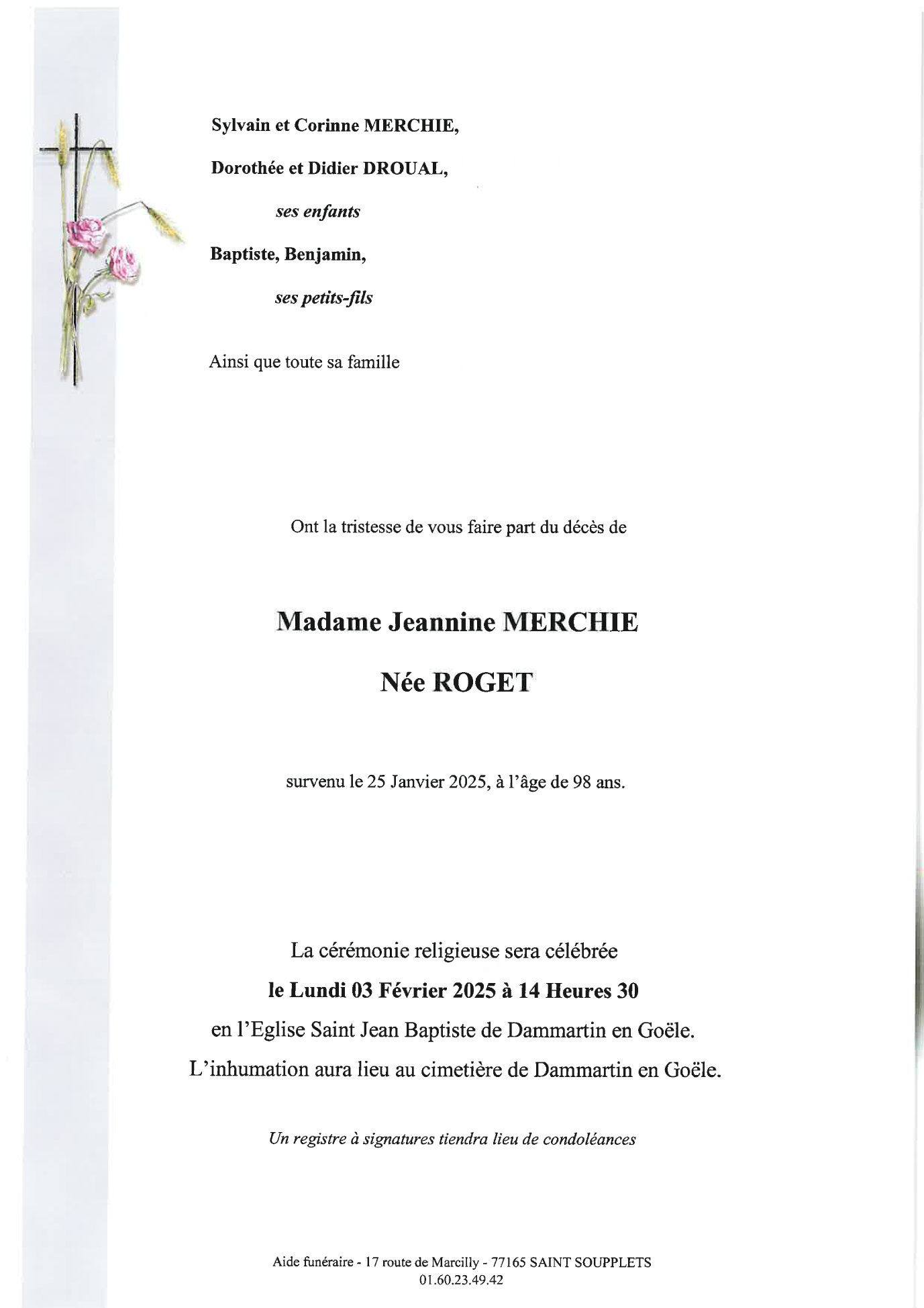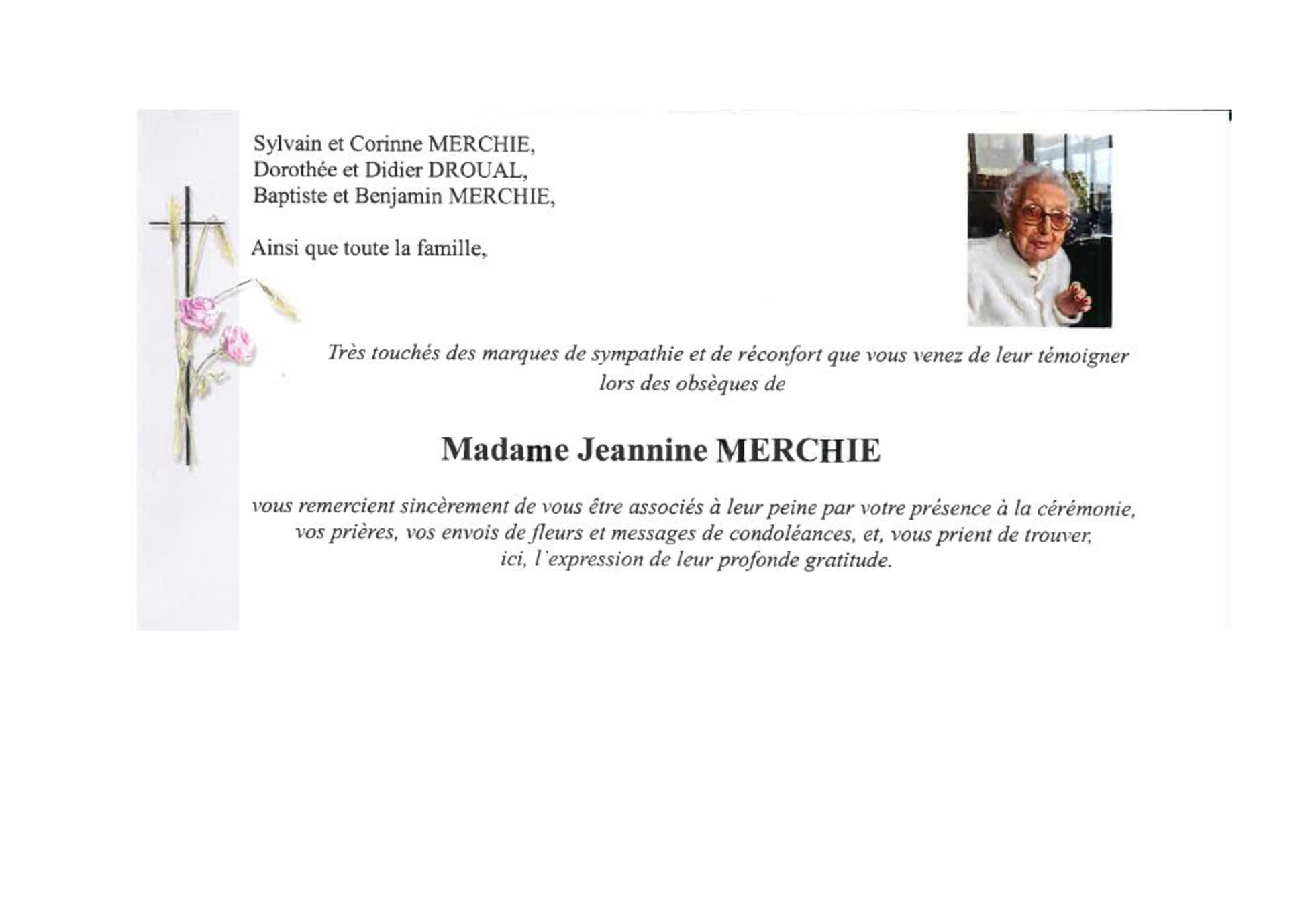 de Madame Jeannine MERCHIE née ROGET