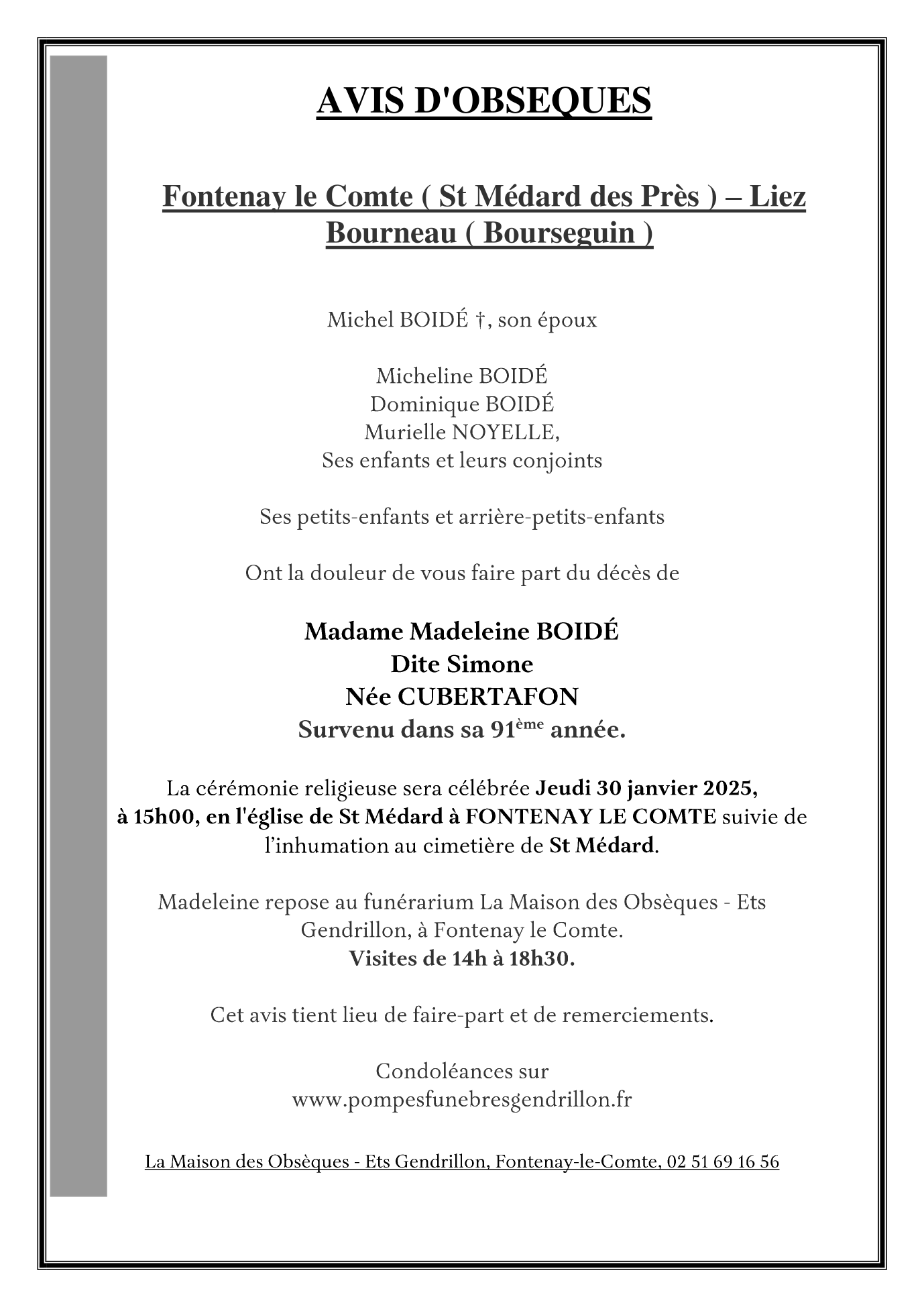 de Madame Madeleine BOIDÉ née CUBERTAFON
