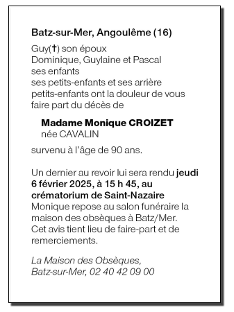 de Madame Monique CROIZET née CAVALIN