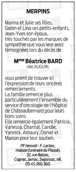 de Madame Béatrice BARD née AUGUIN
