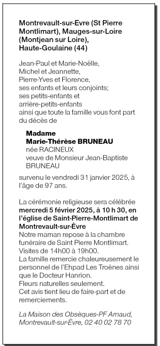 de Madame Marie-Thérèse BRUNEAU née RACINEUX