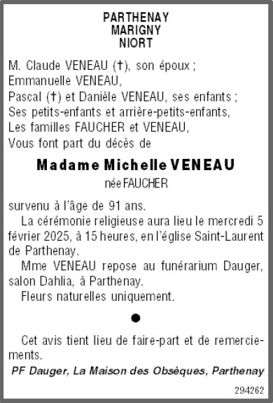 de Madame Michelle VENEAU née FAUCHER