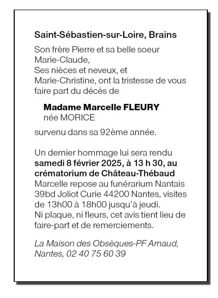 de Madame Marcelle FLEURY née MORICE