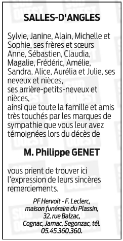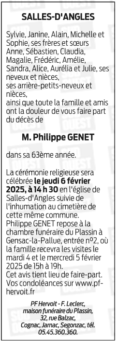 Cet espace « condoléances » est dédié à la mémoire de Monsieur Philippe GENET.