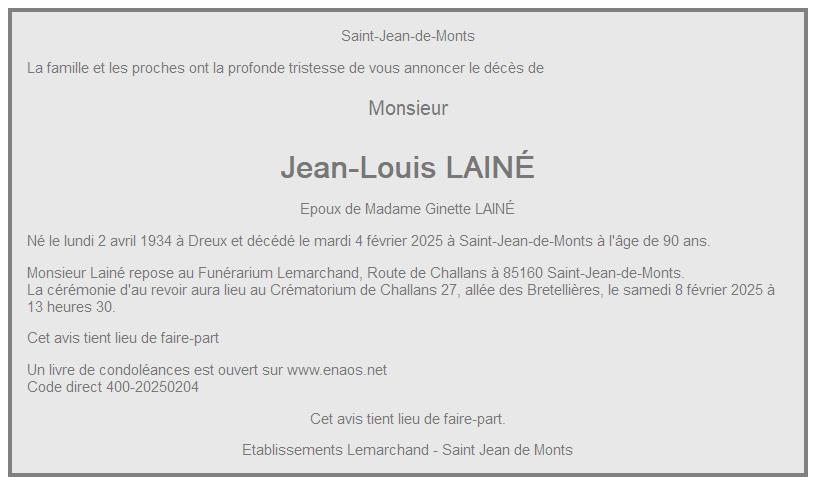 Cet espace « condoléances » est dédié à la mémoire de Monsieur Jean-Louis LAINÉ.