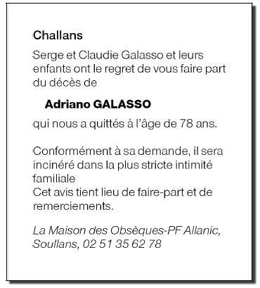 Cet espace « condoléances » est dédié à la mémoire de Monsieur Adriano GALASSO.