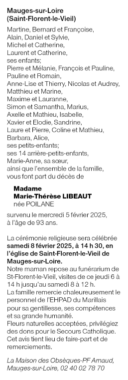 de Madame Marie-Thérèse LIBEAUT née POILANE