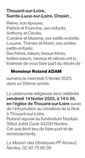 Cet espace « condoléances » est dédié à la mémoire de Monsieur Roland ADAM.