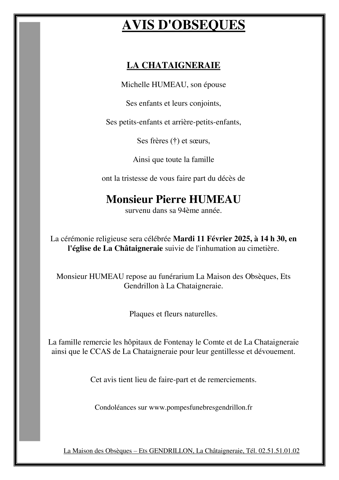 de Monsieur Pierre HUMEAU