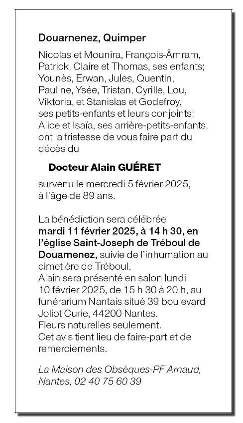 Décédé à Nantes (44200) le mercredi 5 février 2025