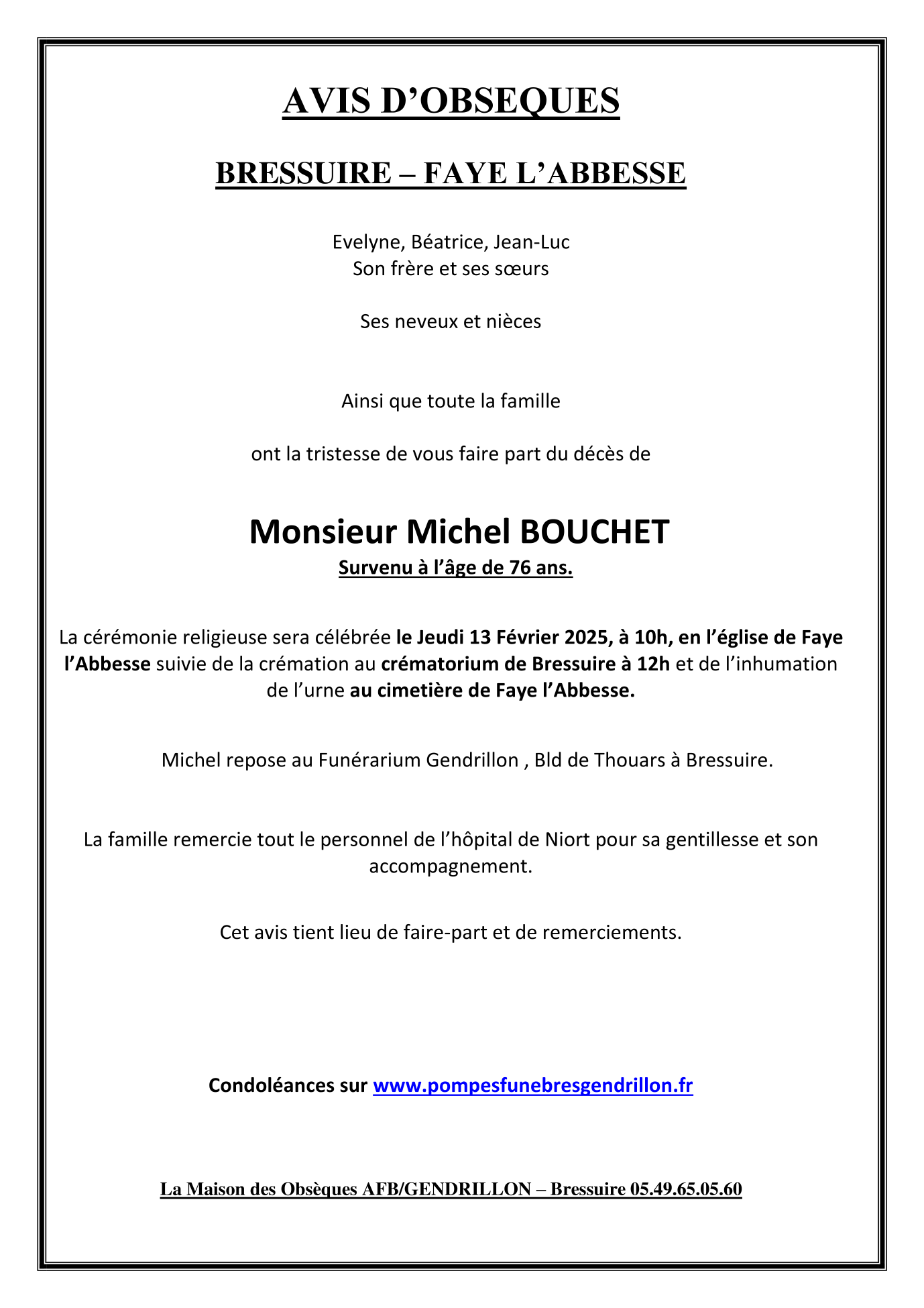 Cet espace « condoléances » est dédié à la mémoire de Monsieur Michel BOUCHET.