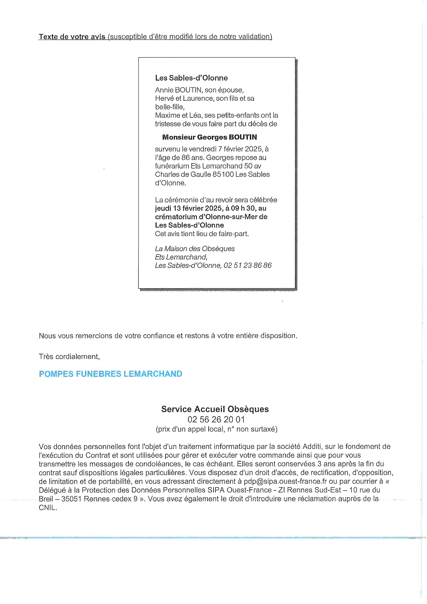 Cet espace « condoléances » est dédié à la mémoire de Monsieur Georges BOUTIN.