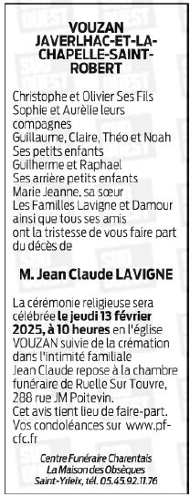 Cet espace « condoléances » est dédié à la mémoire de Monsieur JEAN LAVIGNE.
