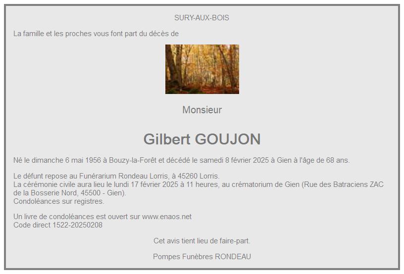de Monsieur Gilbert GOUJON