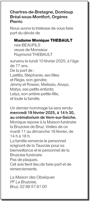 de Madame Monique THEBAULT née BEAUFILS