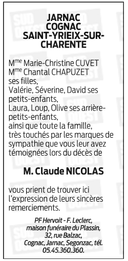 de Monsieur Claude NICOLAS