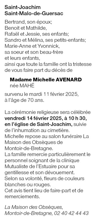 de Madame Michelle AVENARD née MAHÉ
