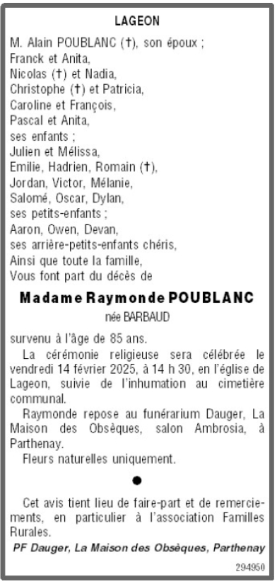 de Madame Raymonde POUBLANC née BARBAUD