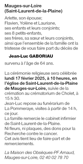 Décédé à Mauges-sur-Loire (49290) le mercredi 12 février 2025