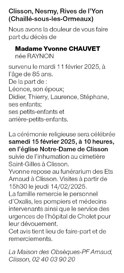 de Madame Yvonne CHAUVET née RAYNON